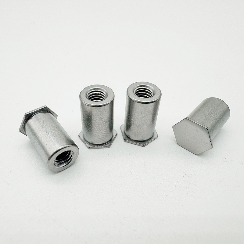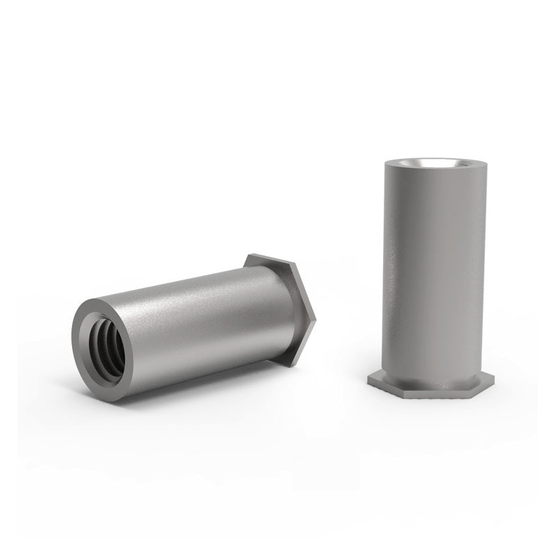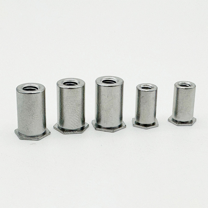 La tuerca hexagonal de la cabeza plana de los agujeros ciego es un sujetador adecuado para materiales delgados. Es fuerte y duradero, y el hilo no es fácil de usar. Tiene una forma hexadecimal para una fácil instalación, una cabeza de contraataque plana que se sienta al ras y un cuerpo de tuercas con un agujero ciego de gama cerrada. Cuando lo instala, la tuerca se deforma mecánicamente (como la remachado) para bloquear el material.