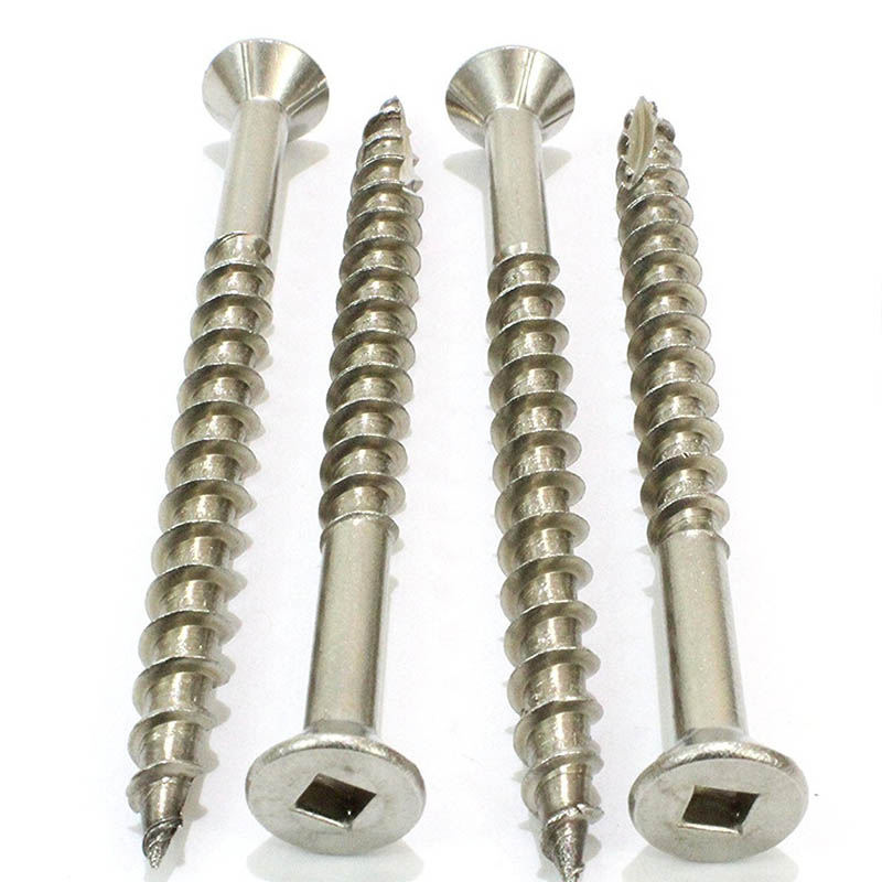 ElTornillo de anticipación con ranura cuadradaCon dos tipos de hilos: roscas gruesas para madera o plástico, y roscas finas para metal. Los ángulos de la cabeza suelen ser de 82 ° o 90 °, que se ajustan a los bits estándar de Counterink, por lo que no necesita herramientas especiales a menos que su proyecto sea realmente único.