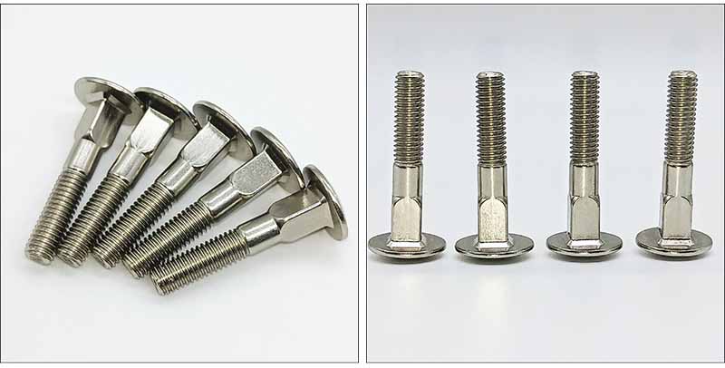 La cabeza delCazón de cabeza de cuello cuadradocon la cabeza grande es más grande que la del perno de la cabeza de la copa ordinaria. Tiene la forma de una taza grande y puede cubrir un área más grande. La parte inferior está conectada a un cuello cuadrado, y más abajo hay un tornillo roscado.