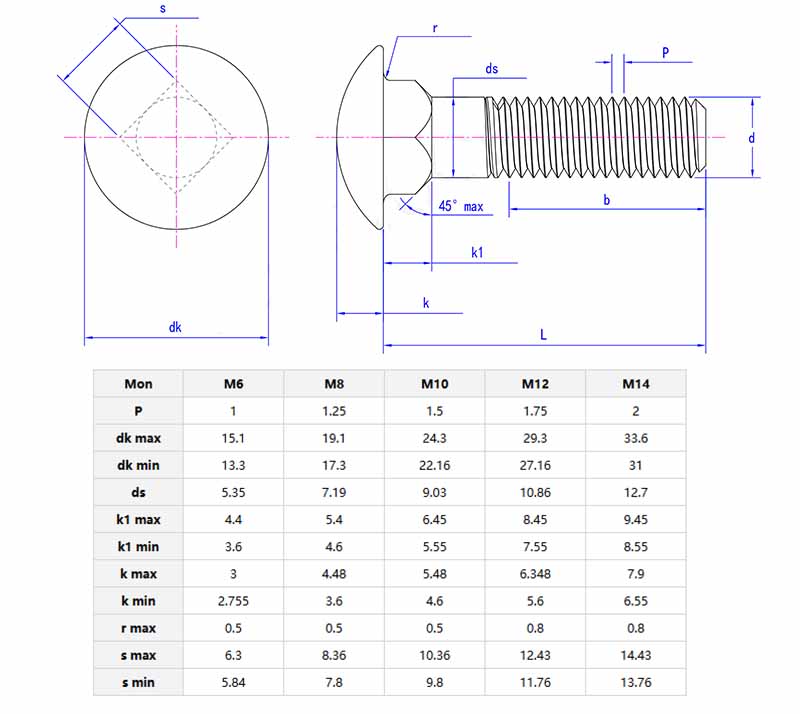 Las características deCazón de cabeza de cuello cuadradoson la "fijación estable y el rodamiento de fuerza fuerte". Tiene un área de contacto más grande con el material fijo, y la presión se distribuye más uniformemente, lo que hace que sea menos probable que dañe o deforma el material. El cuello cuadrado está sujetado en el surco preferido. Cuando la tuerca se aprieta, el perno no girará, lo que hace que la instalación ahorre tiempo y ahorre el trabajo de parto. Además, es fuerte y duradero, capaz de soportar fuerzas considerables de tracción y compresión.