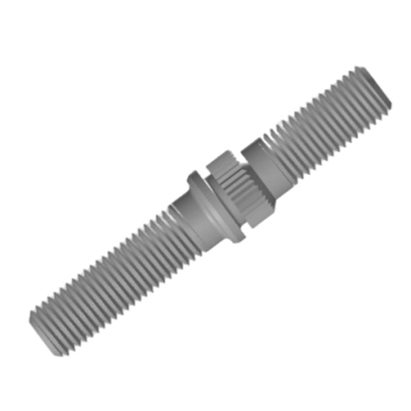 El perno de rueda de doble extremo moleteado tiene la forma de una "varilla" cilíndrica recta y es una estructura escalonada de diámetro variable. Ambos extremos están procesados con roscas externas y hay una estructura moleteada/dentada en el medio, lo que puede aumentar la fricción.