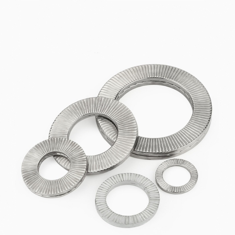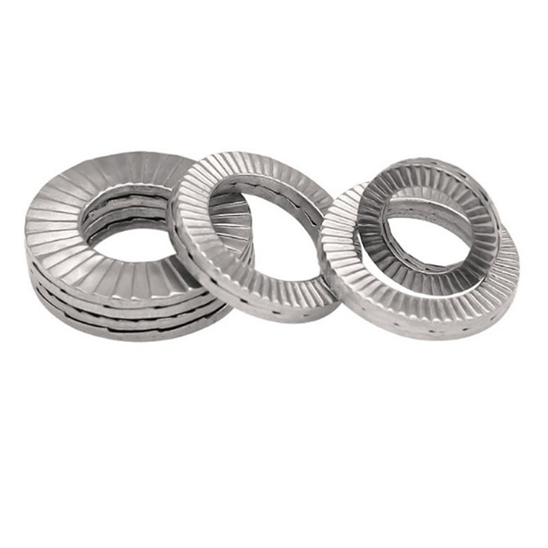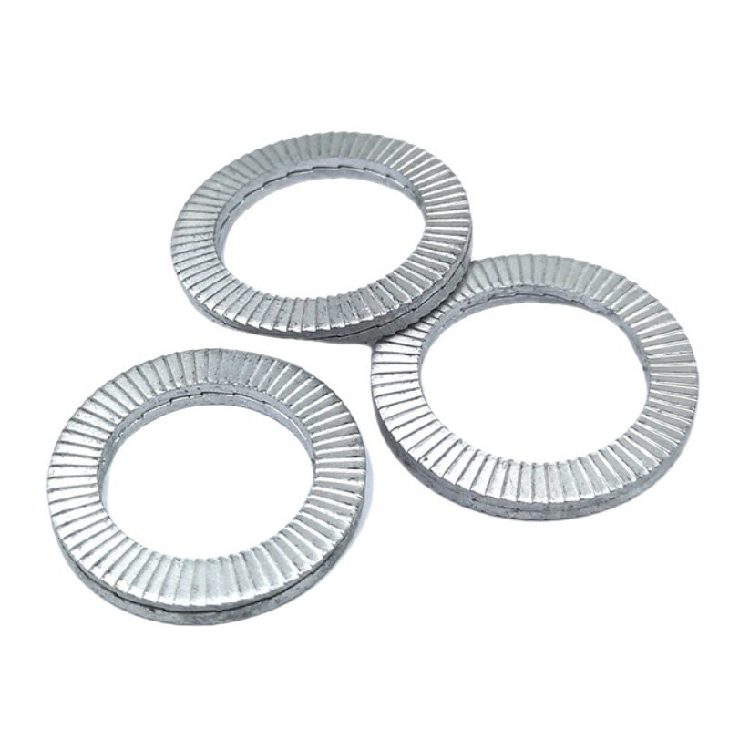 Las arandelas autoblocantes de doble efecto y doble acción generalmente están hechas de acero al carbono, acero inoxidable (incluido SS304/SS316) y acero de aleación para cumplir con los requisitos de rendimiento mecánico de diversos escenarios. Ofrecemos revestimiento de zinc, revestimiento de zinc amarillo y opciones generales de tratamiento de superficies resistentes a la corrosión, lo que permite soluciones personalizadas adaptadas a su entorno operativo específico (como humedad, medios corrosivos y temperatura).