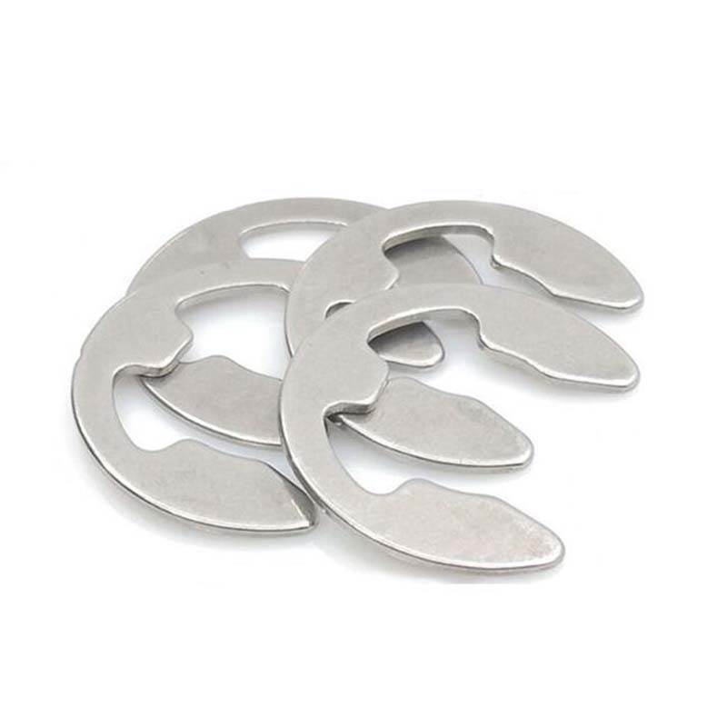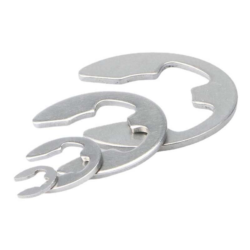 R: Si elige el material incorrecto, el alto calor o la humedad pueden estropear el anillo de ajuste de tipo e. Los anillos de acero de carbono (los más fuertes) se oxidarán en áreas húmedas a menos que tengan un recubrimiento resistente a la óxido. Los aceros inoxidables (como los grados comunes 304/316) resisten bien la humedad, pero comienzan a perder resistencia por encima de 400 ° C. Algunos aceros inoxidables o metales especializados siguen siendo flexibles a temperaturas de congelación. Si están involucrados productos químicos como ácidos o solventes, elija un recubrimiento no reactivo (como el teflón).