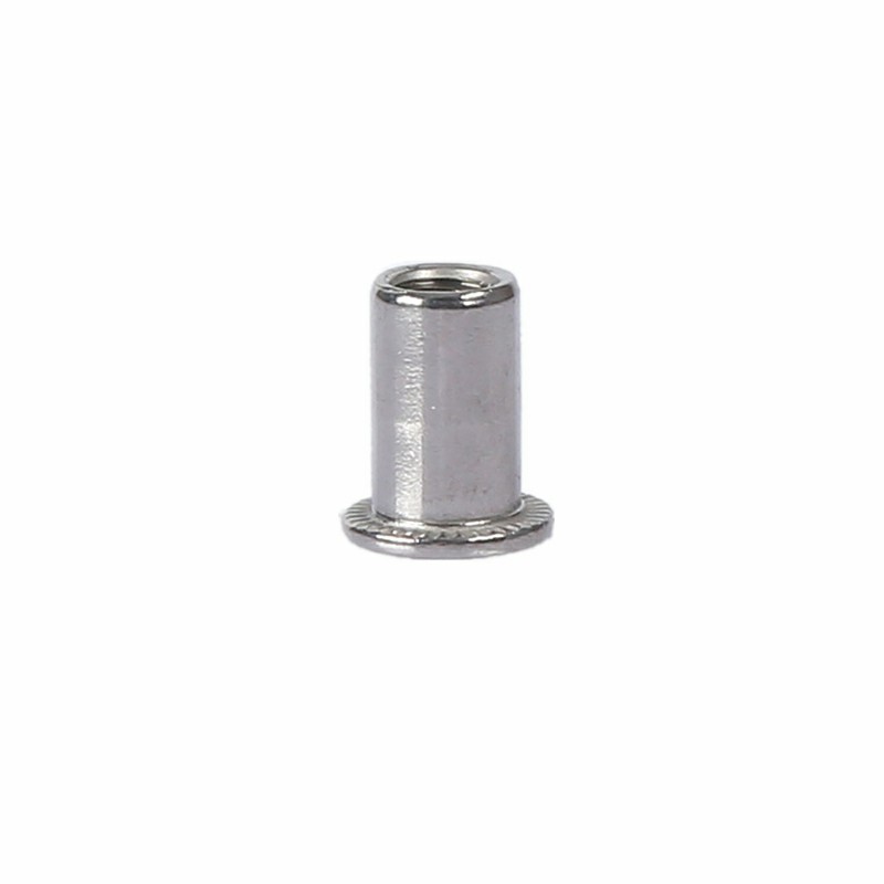 Estas tuercas están diseñadas para que puedan caber firmemente en los agujeros de contraunk previamente perforados, por lo que después de la instalación, la superficie es plana, no sobresaliente y muy lisa. Este método es muy adecuado para su uso cuando solo se puede alcanzar un lado de la pieza de trabajo, lo que facilita mucho el ensamblaje.