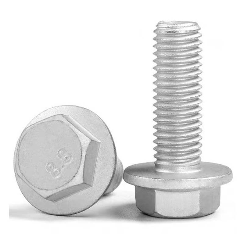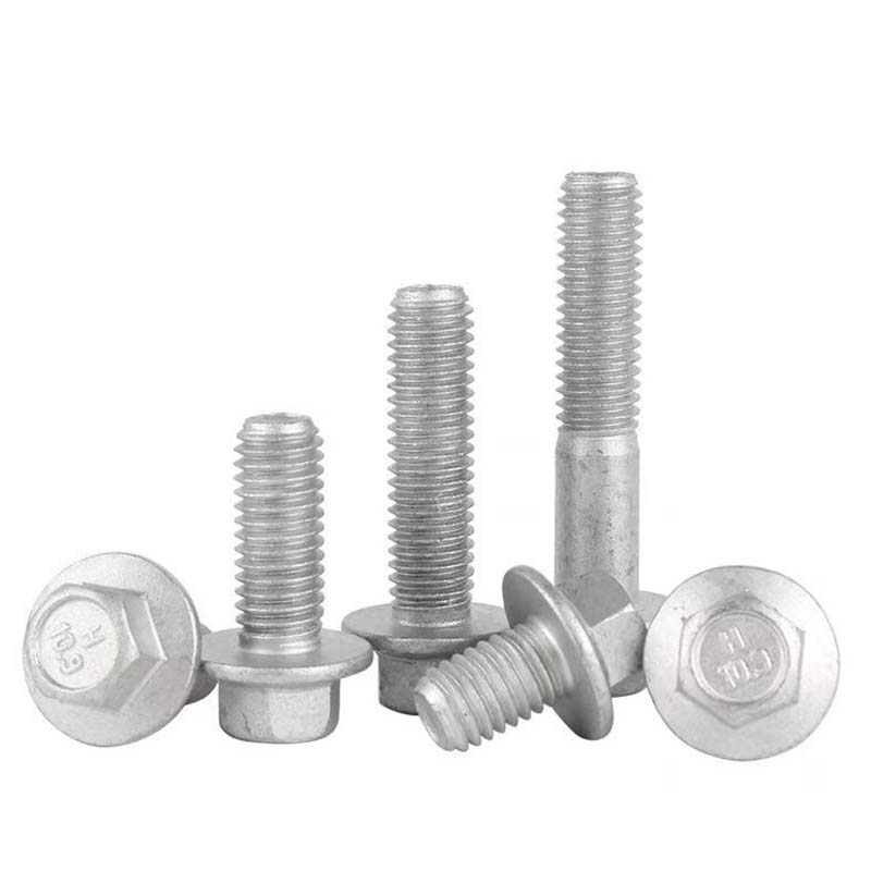 Los tornillos de brida hexadecimales pesados tienen una cabeza hexagonal que es conveniente para apretar con una llave llave o enchufe, una superficie de brida que se usa para dispersar el estrés y expandir la superficie de contacto, y una posición de tornillo roscado que mejora el efecto de apriete y evita que se deslice fuera del orificio de conexión.