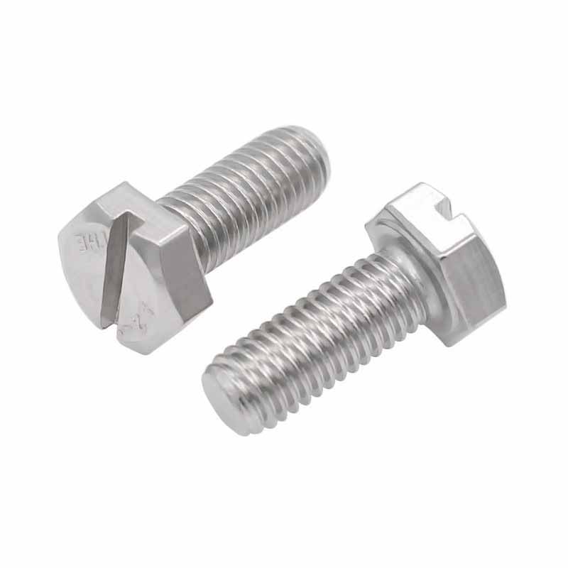 Pernos ranurados hexagonalesson un tipo de sujetador que combina una cabeza hexagonal estándar con una ranura recta (similar a un tornillo de cabeza plana). Se usan comúnmente en las industrias mecánicas y automotrices. Apriete con una llave o destornillador.