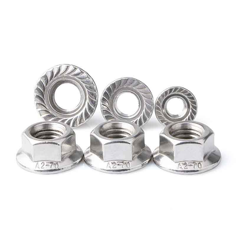 Hay pequeñas estrías en la parte inferior de la brida. Estos les ayudan a resistir muy bien las vibraciones, por lo que no se sueltan cuando hay cargas en movimiento. Esto es una gran ventaja en comparación con el uso de una tuerca normal con una arandela separada.