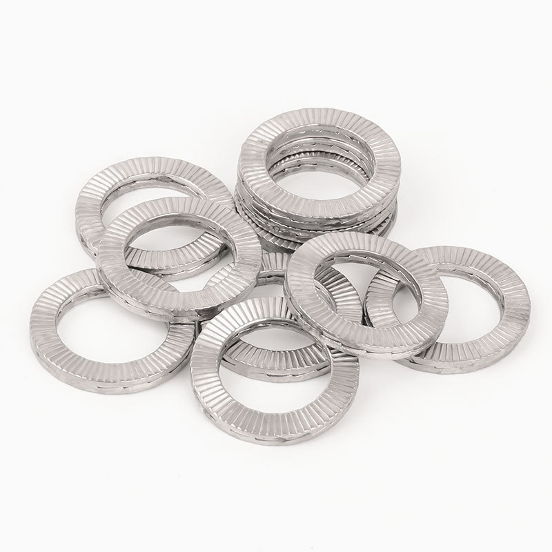 R: Estas arandelas de auto-bloqueo de doble extracción de alta resistencia se pueden usar una y otra vez, manejar muy bien la vibración y seguir funcionando en condiciones de calor y frío. Son una opción económica ya que puede reutilizarlos, a diferencia de las soluciones únicas como Threadlocker o CLANT Wasers.