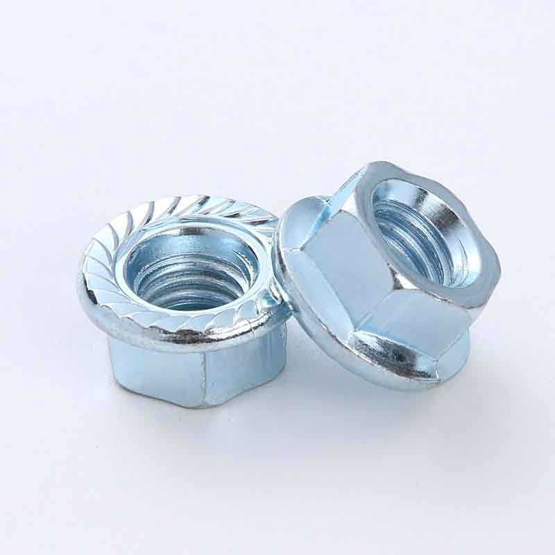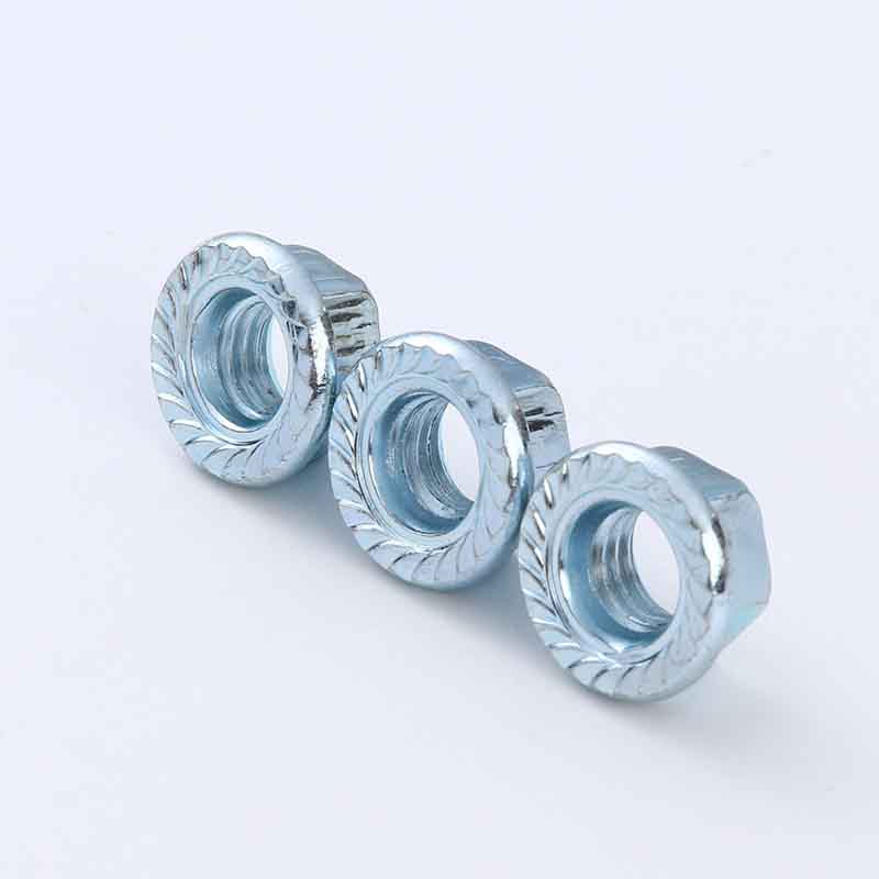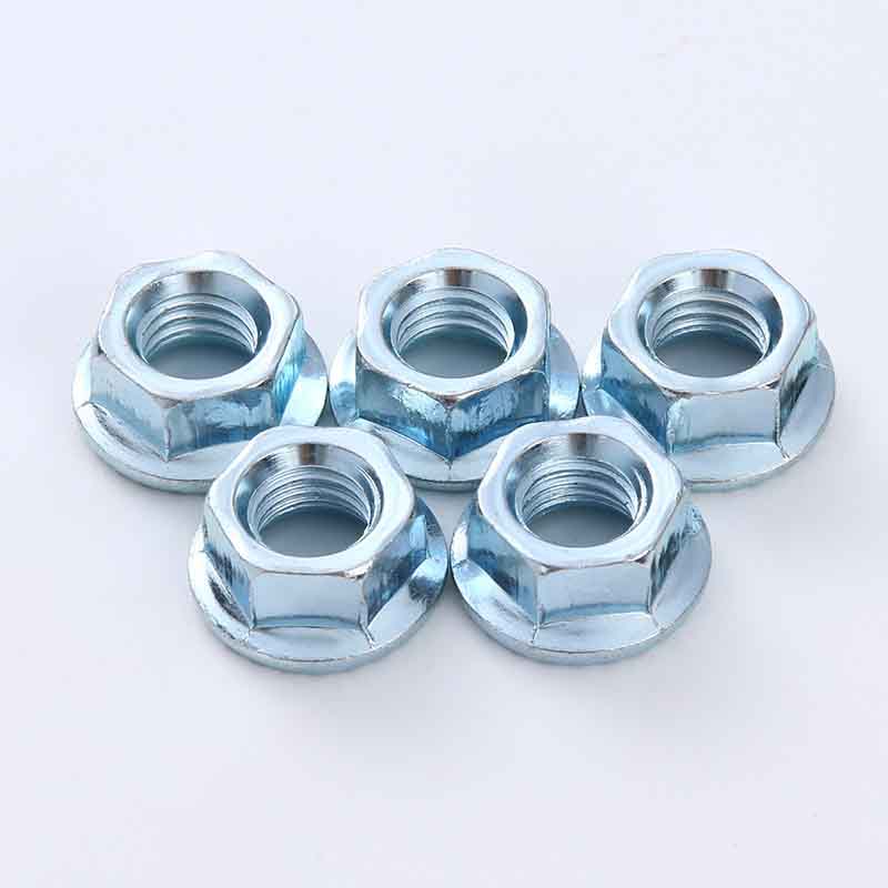 Las tuercas hexagonales de alta resistencia con bridas son sujetadores fabricados combinando una tuerca hexagonal normal con una base circular ancha incorporada, algo así como una arandela. No se requieren arandelas separadas, lo que permite un montaje rápido. Cumple con estándares de grado de alta resistencia, como 8, 10 o 12. Estas tuercas pueden soportar cargas pesadas y proporcionar conexiones estables y seguras bajo estrés o vibración elevados, lo que las hace adecuadas para su uso en entornos industriales y de ingeniería estructural hostiles.