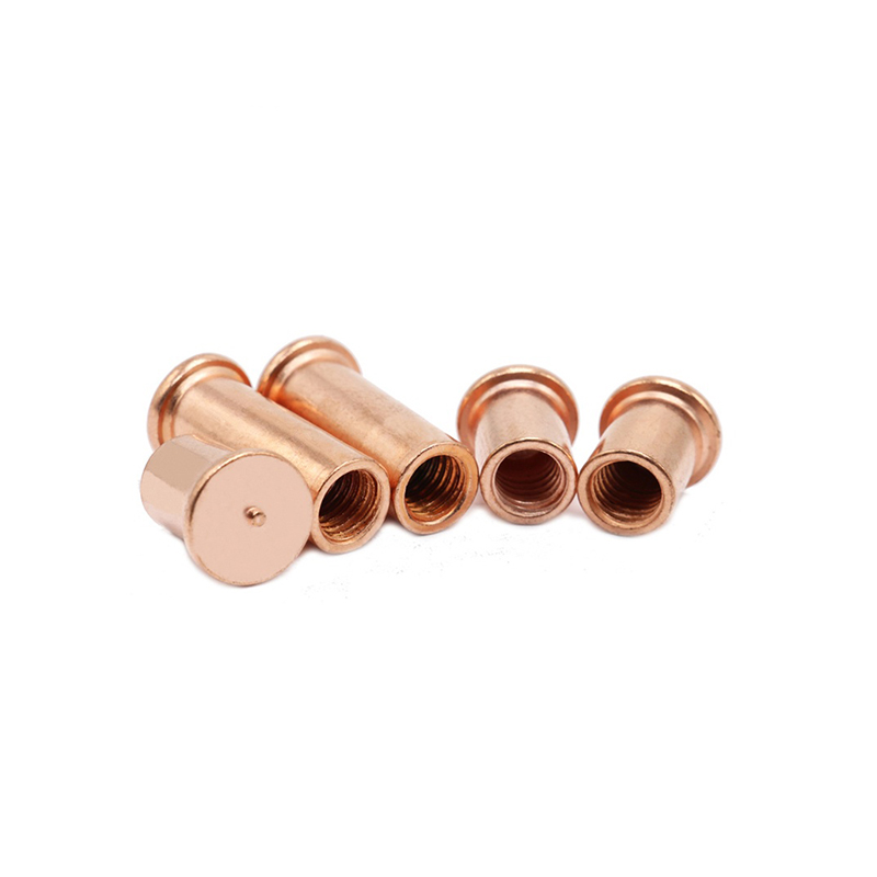Los pernos de soldadura de rosca interna de alta resistencia generalmente están hechos de aleaciones de aluminio de la serie 5000 y 6000. El aluminio forma una película de óxido natural y densa en el aire que proporciona protección, lo que resulta en una excelente relación de resistencia / peso y resistencia de óxido superior. La excelente conductividad térmica del aluminio y el bajo punto de fusión permiten la soldadura de la descarga del condensador de los pernos. Estos espantes se utilizan ampliamente en entornos que requieren conexiones livianas, resistentes a la corrosión y de alta resistencia.