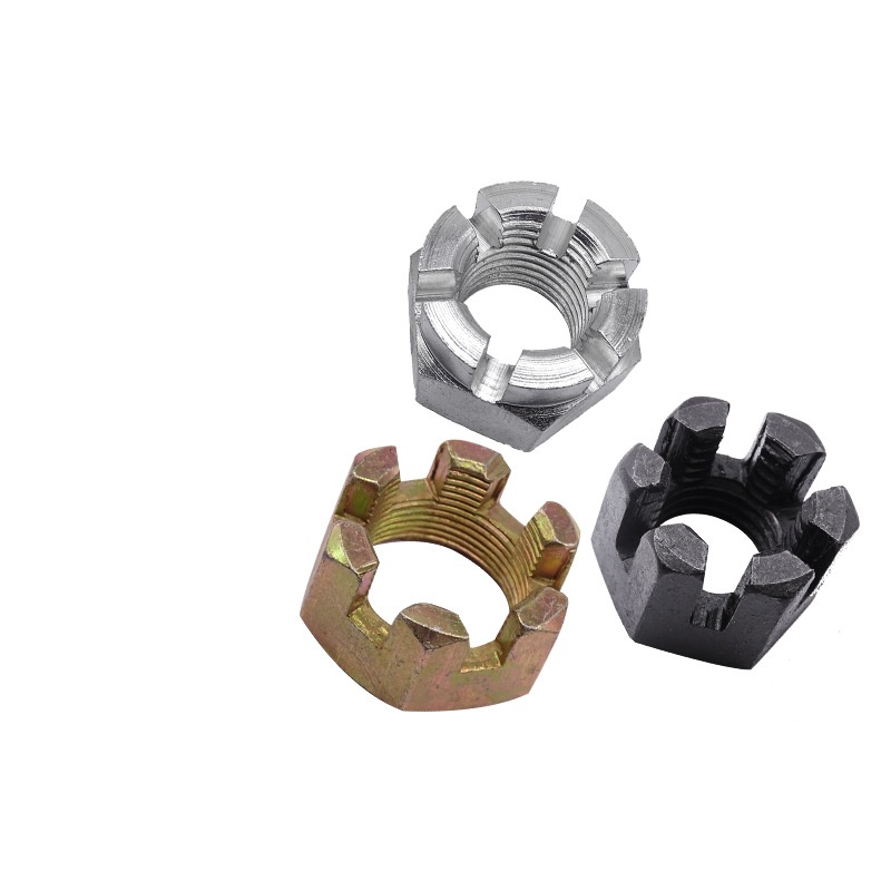 La tuerca de corona de alto par con ranura es un sujetador especial utilizado en trabajos importantes donde debe asegurarse de que permanezca bloqueado en su lugar, incluso con vibraciones o si intenta girar. Parece una tuerca hexagonal normal, pero en la parte superior hay una parte de la corona cilíndrica con una ranura cortada. Esa ranura le permite bloquearlo apretado con un pasador de chorro o un cable de seguridad. Estas nueces se quedan cuando las nueces regulares pueden soltarse, por lo que son bastante necesarias para configuraciones mecánicas difíciles, especialmente en aeroespacial, fabricación de automóviles y maquinaria pesada, donde la seguridad realmente importa.
