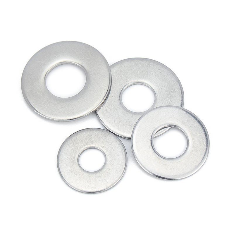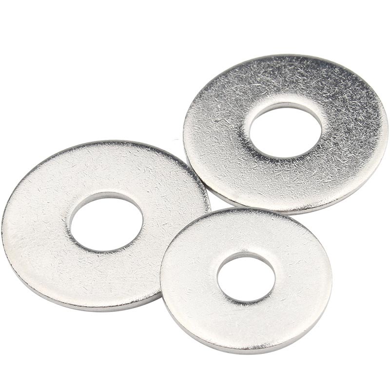 Grandes lavadoras lisastener un diámetro exterior más grande. Este tipo de lavadora es redonda, más común y tiene una estructura simple. Se usa principalmente para aumentar el área de contacto entre el tornillo y el objeto conectado, reducir la fricción y evitar caerse.