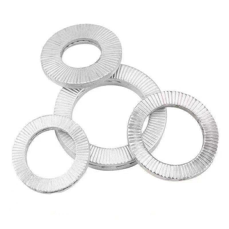 Lo bueno de las arandelas de bloqueo de dos pliegas sin mantenimiento es que son realmente buenas para no dejar que las cosas se aflojen de las vibraciones, mejor que muchas arandelas de bloqueo regulares. Cerran las cosas en su lugar con una bodega mecánica, no solo dependiendo de la fricción entre hilos. Ponerlos juntas es más fácil que usar pegamentos químicos o esas nutas de bloqueo más complicadas. Además, estas lavadoras mantienen un buen agarre de las piezas que sostienen, y en algunos casos donde no es súper crítica, incluso puede reutilizarlas.