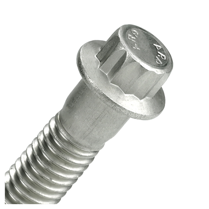 Tornillos de brida métrica tipo F de 12 puntos con brida de diente de sierra. Cuando se aprietan, estos dientes morderán la superficie, evitando que los equipos mecánicos (como los rodillos de la cinta transportadora o los soportes de la bomba) se aflojen debido a la vibración. No es necesario agregar arandelas de seguridad adicionales.