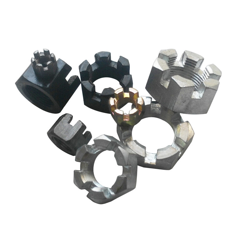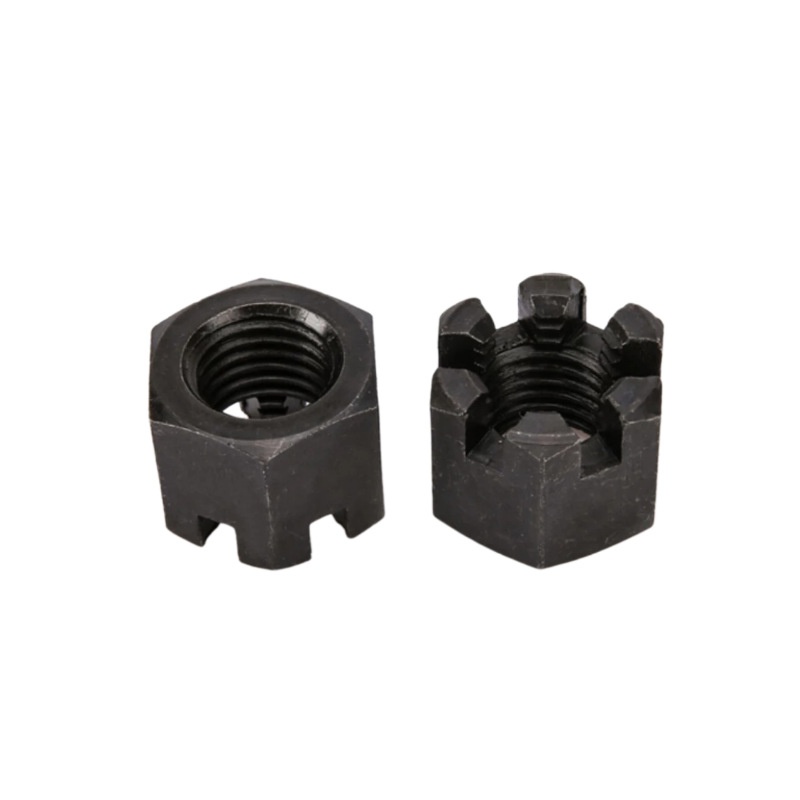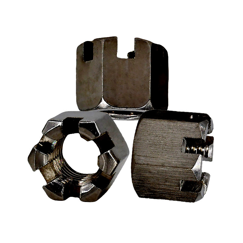 La tuerca de corona mecanizada con precisión con ranura generalmente está hecha de acero de carbono fuerte o acero de aleación, como el grado 5, el grado 8 o el AISI 4140. Esta propiedad les da una dureza excelente, y también funcionan bien en las tres propiedades mecánicas clave de resistencia a la tracción, resistencia al rendimiento y resistencia al corte. Estar hecho de acero fuerte significa que estas tuercas pueden manejar mucha fuerza de sujeción y estrés por el uso sin doblar ni romperse. Es por eso que funcionan bien para trabajos de carga pesada en lugares difíciles, como marcos estructurales, transmisiones y piezas de suspensión.