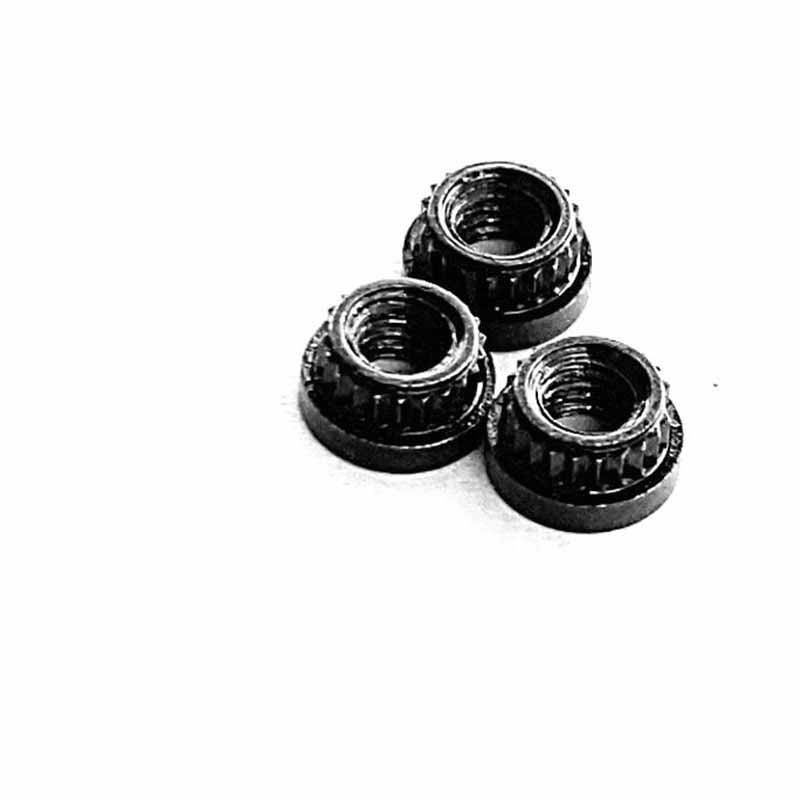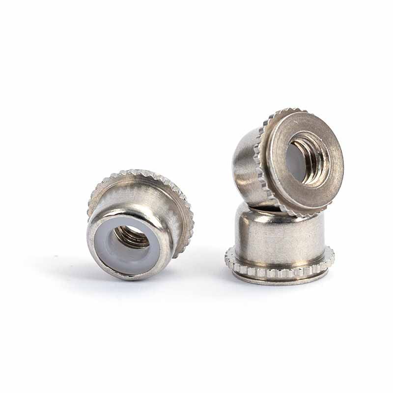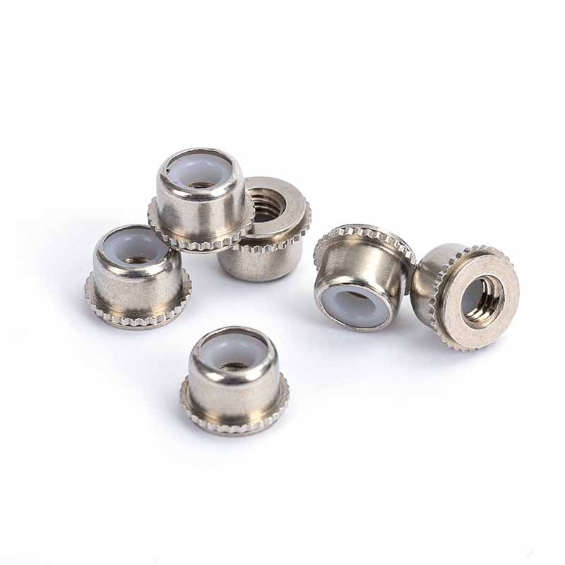 R: Estas tuercas autoremachables con roscas unificadas están hechas para materiales delgados. Sus dimensiones compactas requieren una fuerza mínima durante la instalación, lo que permite apretar con un agarre más ligero. En comparación con sujetadores más grandes, es menos probable que cause deformación del panel. Su método de remachado consigue un efecto de bloqueo robusto en un único punto. Seleccione espesores de material que coincidan con las dimensiones de la tuerca y el rango de sujeción para garantizar una conexión segura.