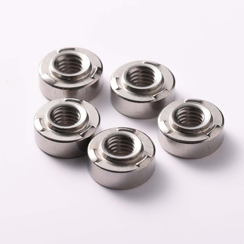 En el costado o en la parte inferior de la tuerca soldada de proyección autoremachable, hay algunas estructuras especiales, como protuberancias, ganchos o dientes. Estas estructuras son la clave de su característica de autoapriete. Sus especificaciones de rosca también son bastante diversas y se puede combinar con varios pernos correspondientes.
