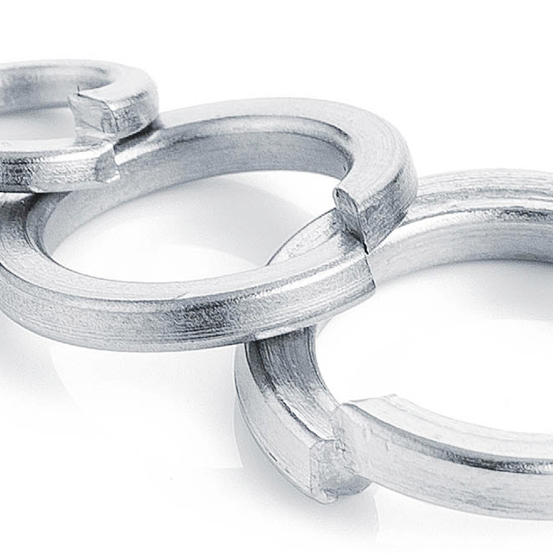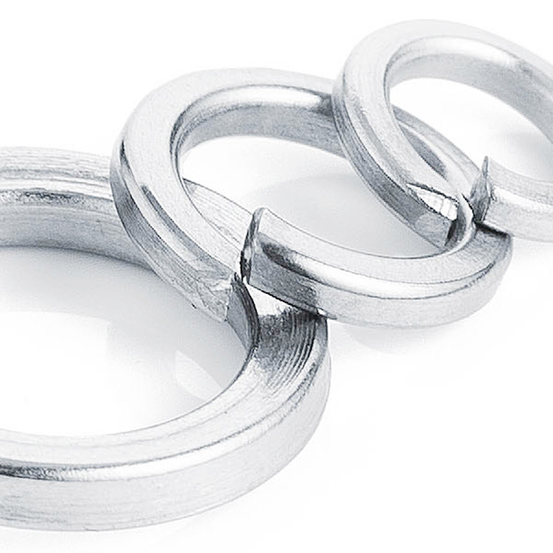 Son arandelas de anillos partidos de espesor moderado (normalmente entre 1 y 3 milímetros) fabricadas en acero galvanizado en caliente. Este material les confiere un aspecto plateado y una excelente resistencia a la oxidación.