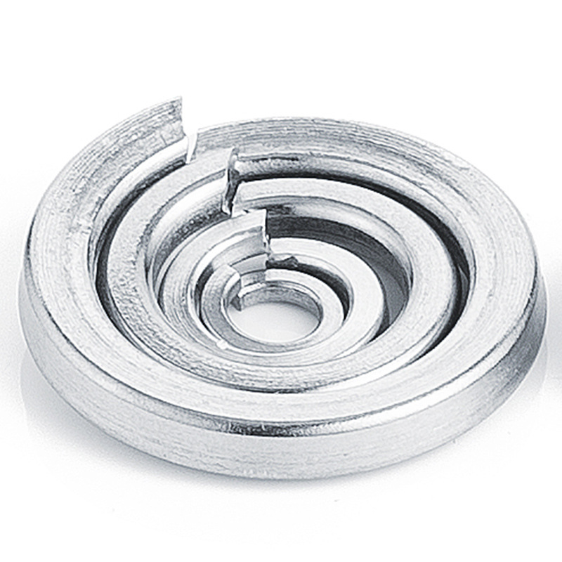 Las arandelas de resorte autoenergizantes son componentes cruciales en los motores de automóviles. Se utilizan para fijar pernos a componentes como culatas y cárteres de aceite, especialmente cuando hay numerosas vibraciones que podrían hacer que los pernos se aflojen. Estas arandelas son anillos de resorte divididos: tienen la característica de ser elásticos para soportar la presión, pero también son muy resistentes. Por lo general, están hechos de acero al carbono (de color plateado) o acero inoxidable (con una superficie gris mate).