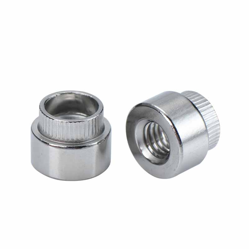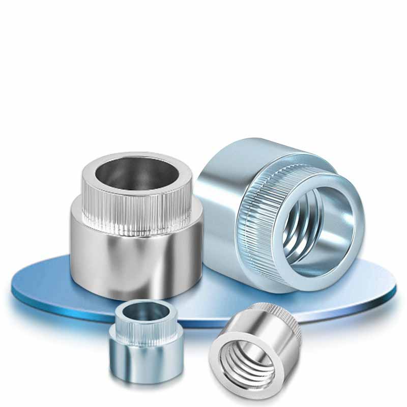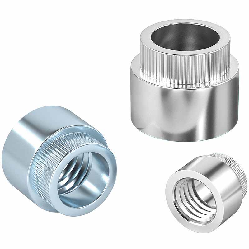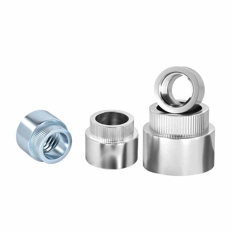 Mientras tanto, la parte de la tuerca redonda tiene roscas regulares en el interior. La gran brida molesta hace dos trabajos: extiende la fuerza de expulsión para que no se abarroja el material delgado, y el parto (esas pequeñas crestas) muerde en la superficie para evitar que todo el arbusto remachado redondo gire cuando gira o sale un perno.