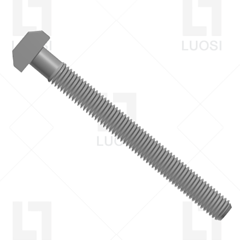La cabeza T y el perno de anclaje medio hueco se usan para fijar los rieles a los durmientes de concreto. La cabeza en forma de T es plana y ancha, proporcionando una superficie de soporte sólida para la placa inferior del riel. Los pernos están ligeramente doblados bajo tensión, lo que ayuda a mantener la fuerza de sujeción cuando el riel se hunde o se mueve, lo cual es crucial para la estabilidad de la pista.