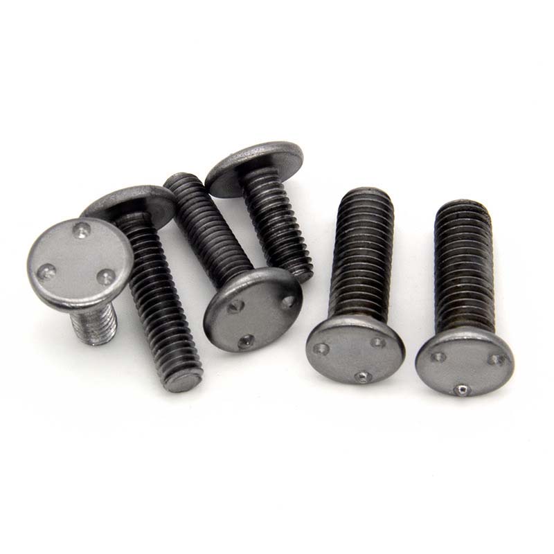 Este tornillo de soldadura con proyección por encima de la cabeza es fuerte y eficiente. Durante el proceso de soldadura, la corriente se concentra en la plataforma de soldadura convexa, lo que permite que los pernos y las piezas soldadas se conecten firmemente entre sí en un tiempo mucho más corto que con los métodos de soldadura convencionales. Las tres estaciones de soldadura convexas pueden ayudar a que los pernos encuentren automáticamente sus posiciones correctas.