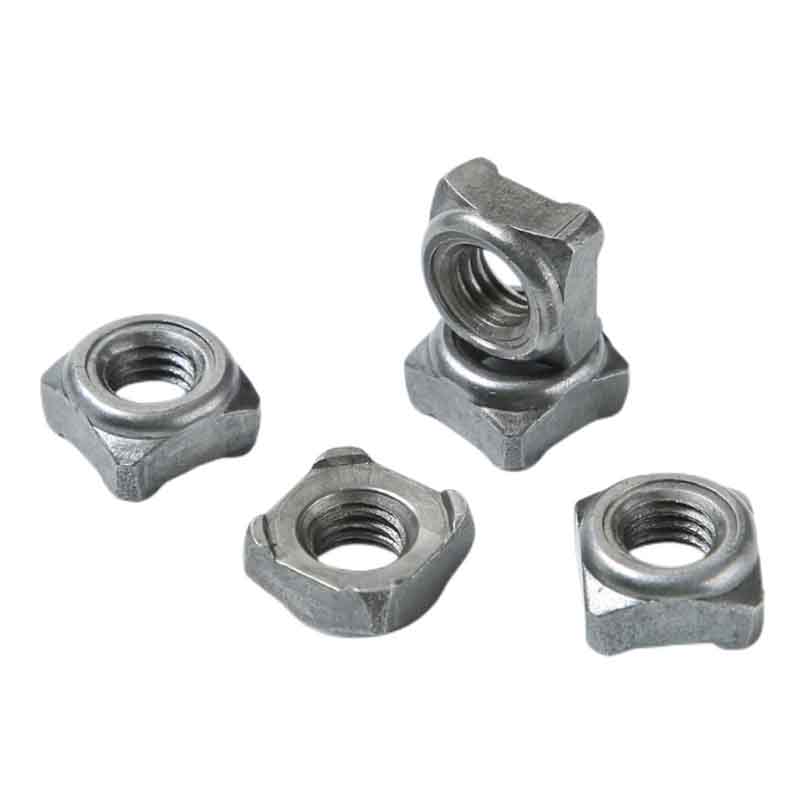 Las tuercas para soldar cuadradas tipo A son un tipo de tuercas para soldar especiales. Tienen forma cuadrada y cuatro salientes de soldadura, lo que hace que el proceso de soldadura sea más seguro. Las roscas también son estándar, lo que les permite encajar bien conlos tornillos.