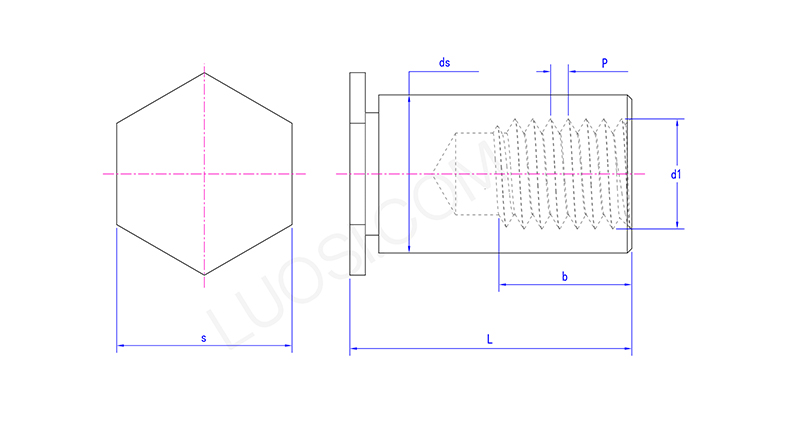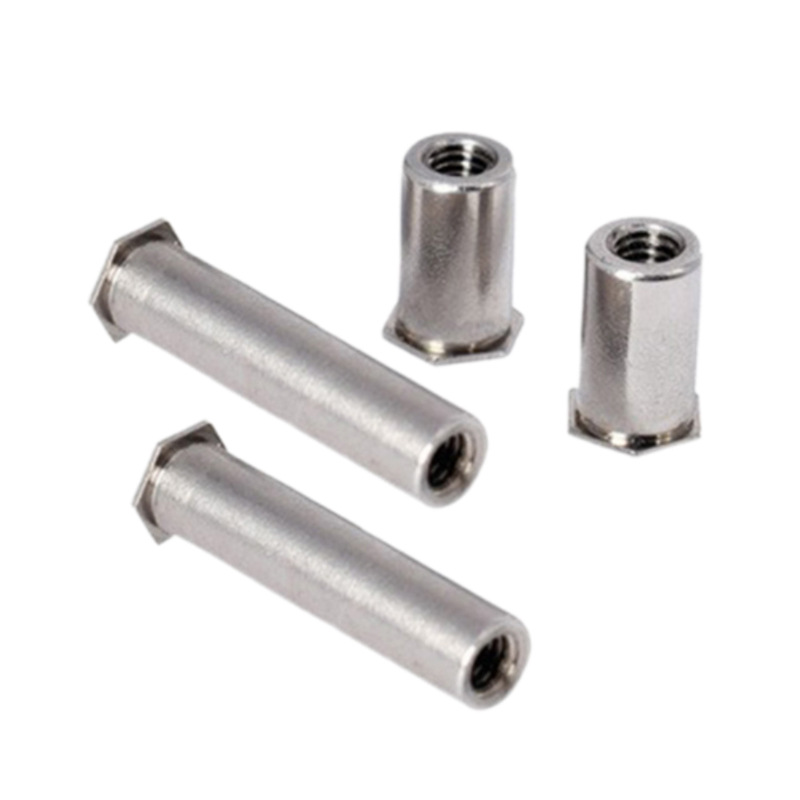 Para instalar la tuerca hexagonal hexágono de la cabeza del agujero ciego, necesita una herramienta especial de tuerca remachada. Primero, taladre un orificio en el material que sea el tamaño correcto. Pon la tuerca remachada en el agujero, luego el mandril de la herramienta agarra la cabeza hexadecimal. Cuando aplica presión, el mandril se tira hacia adentro, haciendo que el barril del remache se expanda hacia afuera contra la parte posterior del material, forma un bulto sólido. Al mismo tiempo, la cabeza plana se tira al ras en la avicultura.