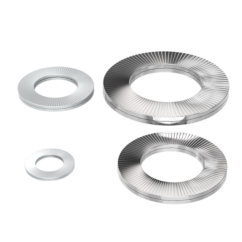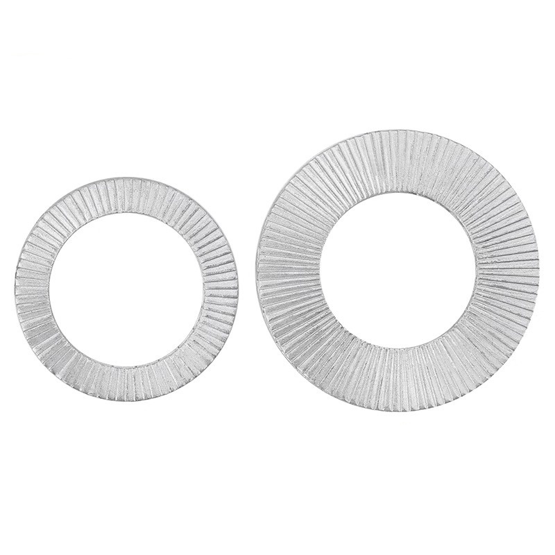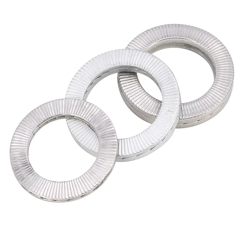 Las arandelas de bloqueo de dos veces inquebrantable funcionan debido a su diseño de dos partes. Un lado tiene pequeñas crestas que excavan en la superficie con la que se combina, como un soporte. El otro lado ha levantado, pistas inclinadas o cuñas pequeñas. Cuando aprieta el sujetador, estas piezas inclinadas empujan las pestañas internas de la lavadora, creando una presión fuerte y constante de resorte contra el perno o la cabeza de la tuerca. Este bloqueo de dos vías utiliza la fricción y la fuerza de primavera para evitar que las cosas se vuelvan, más que la mayoría de las otras formas.